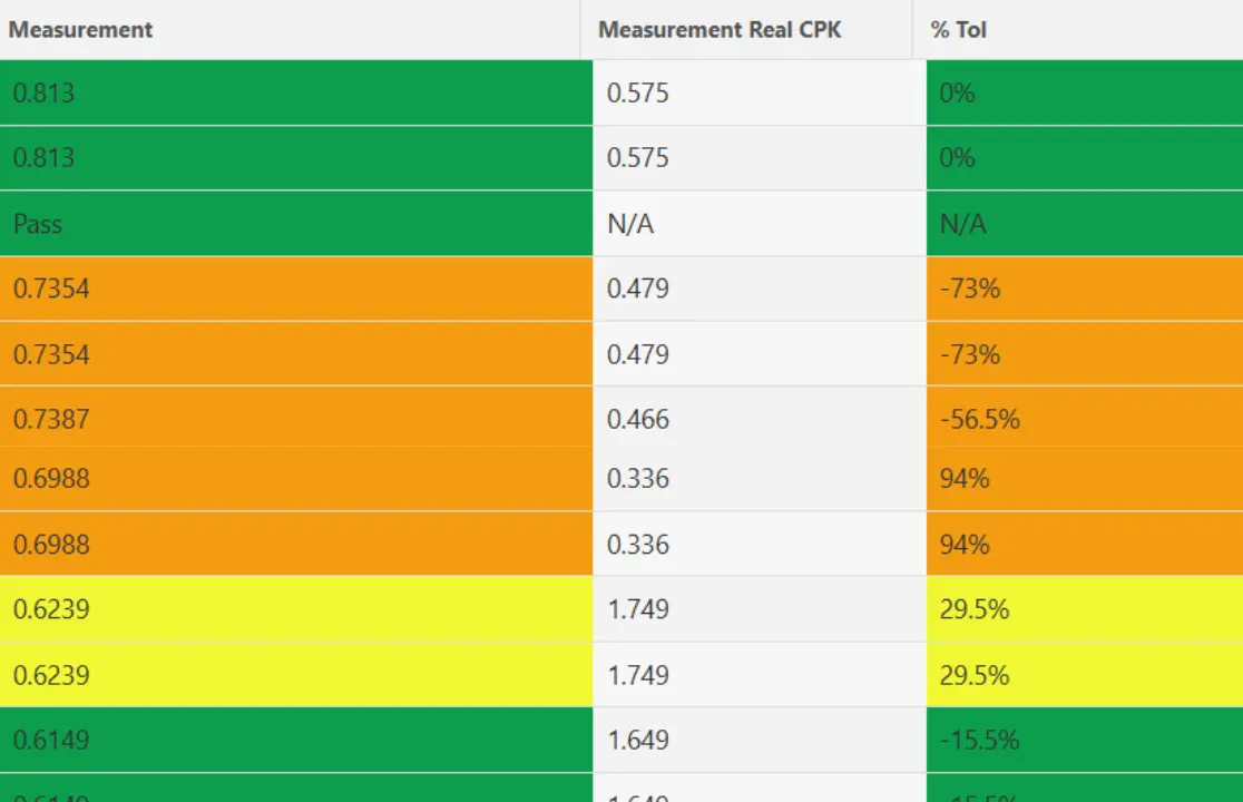 The Quality Management Measurement Report now includes a Real CPK column that records process capability at the moment each measurement was taken. Based on your most recent 25 measurements, you can now see how capability has changed over time, not just where it stands today.